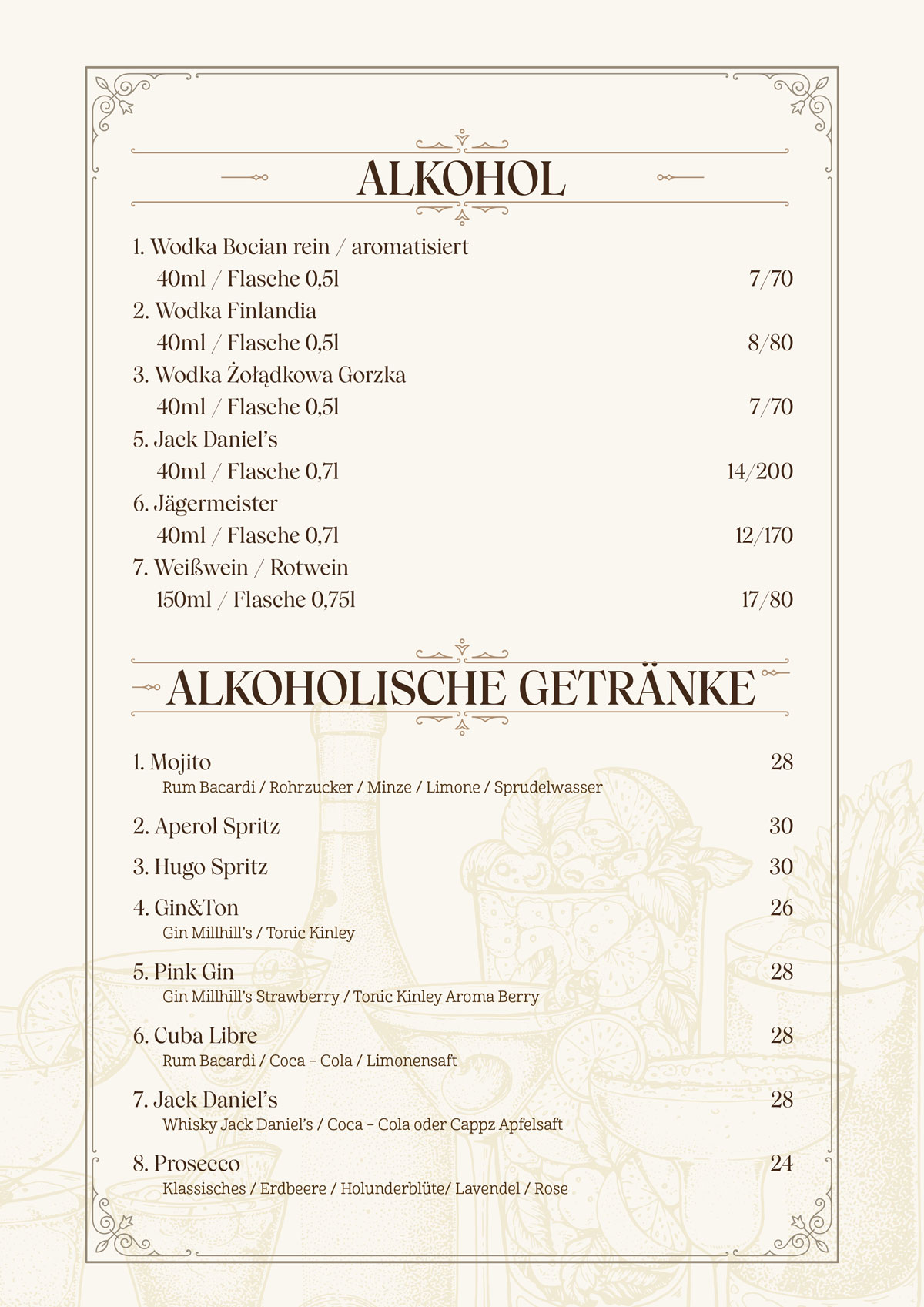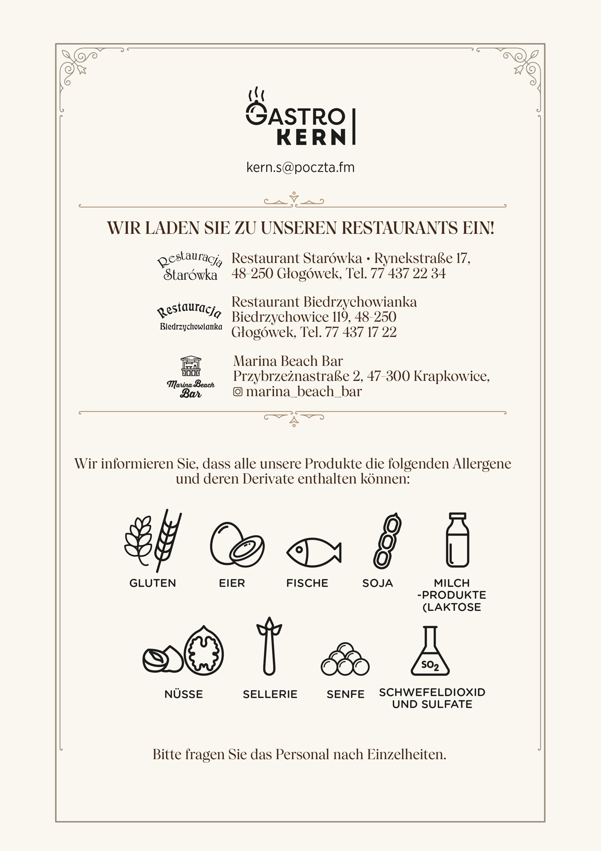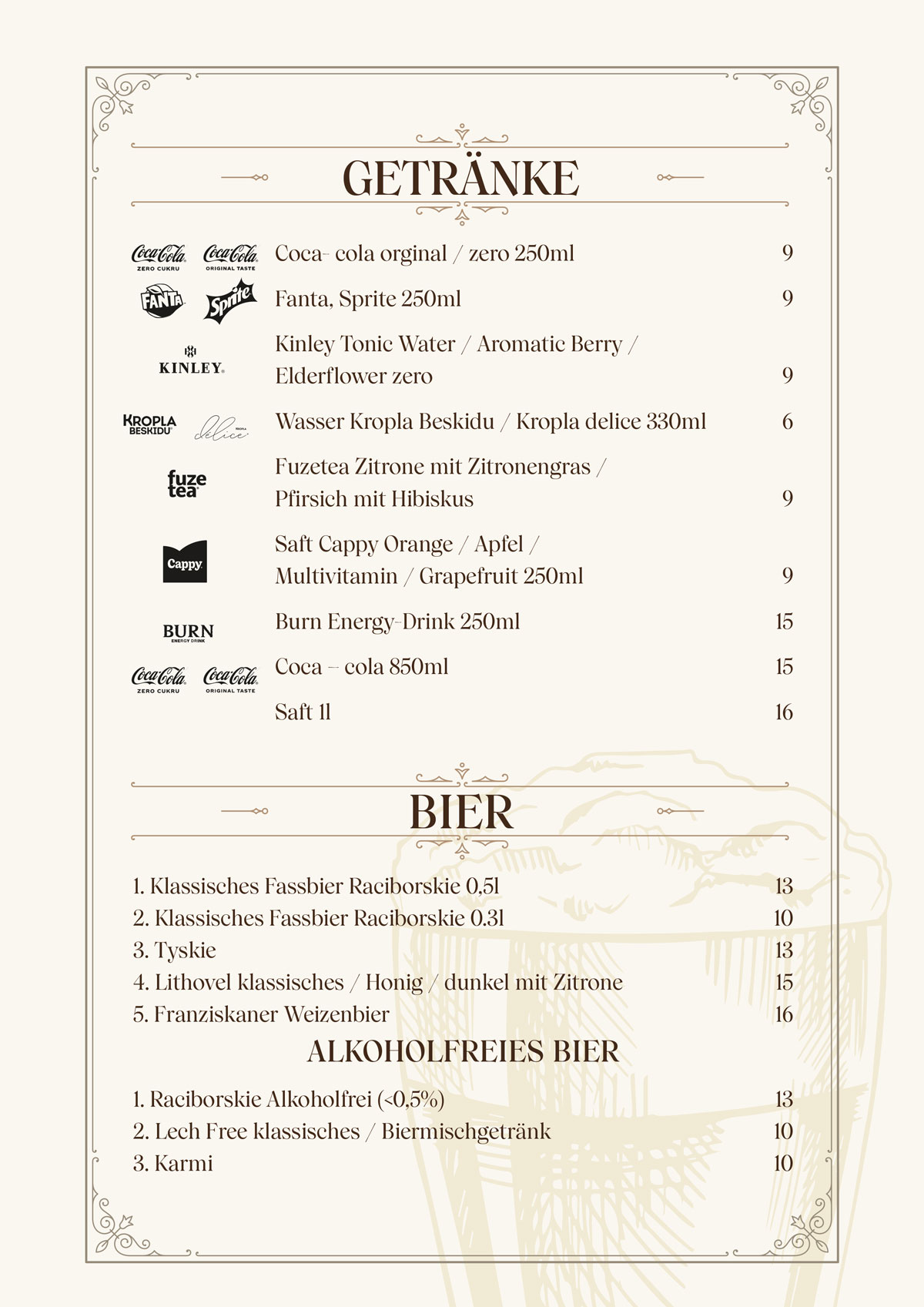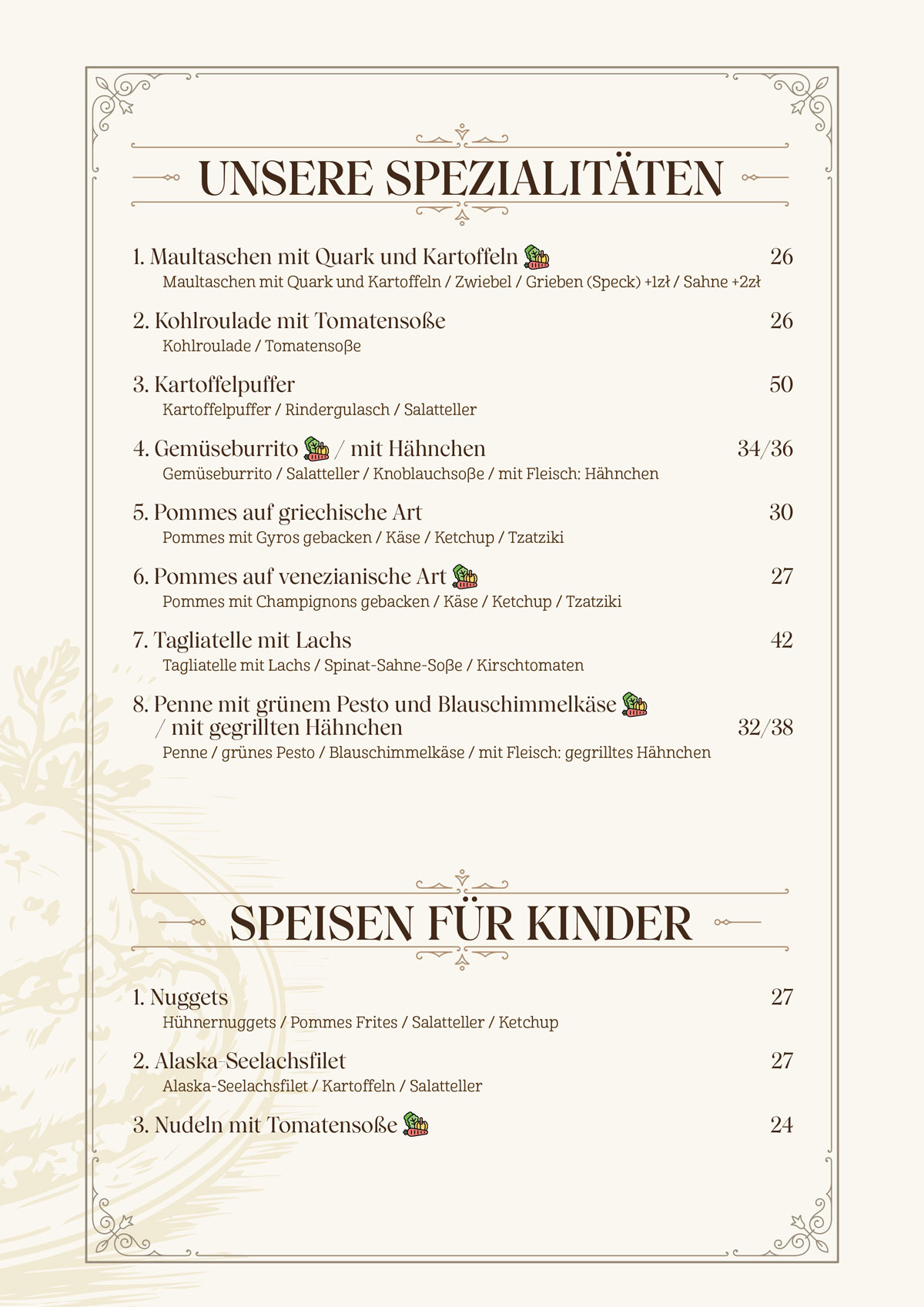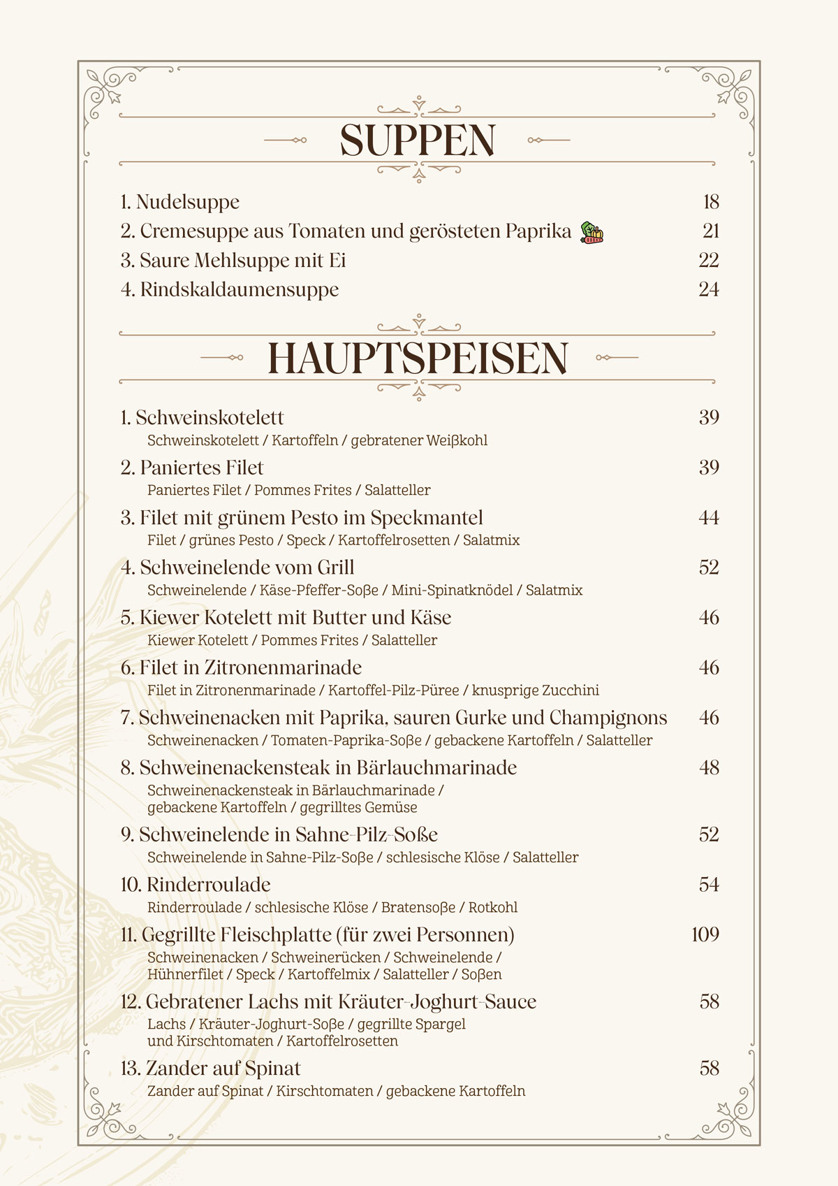 Restauracja Starówka - Menu niemieckie